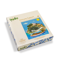 This box contains 54 biodegradable pyramid tea bags in 8 carefully selected blends, created to support everyday immune balance and overall well-being.