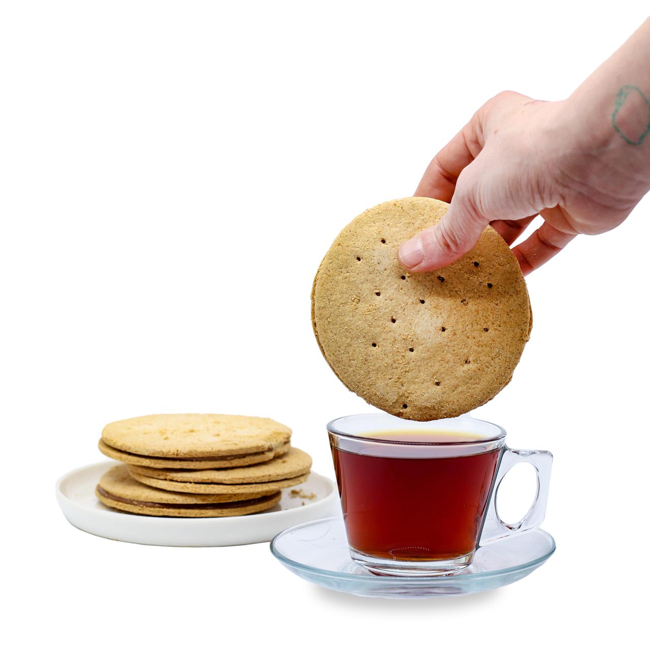 Cafe Lazika icadı bu glutensiz bisküvi, iki bisküvi arasında enfes Belçika çikolatasıyla hazırlanır. Ne fazla tatlı, ne ağır. Çayın yanına yakışacak kadar dengeli, bir tane daha aldıracak kadar tanıdık.