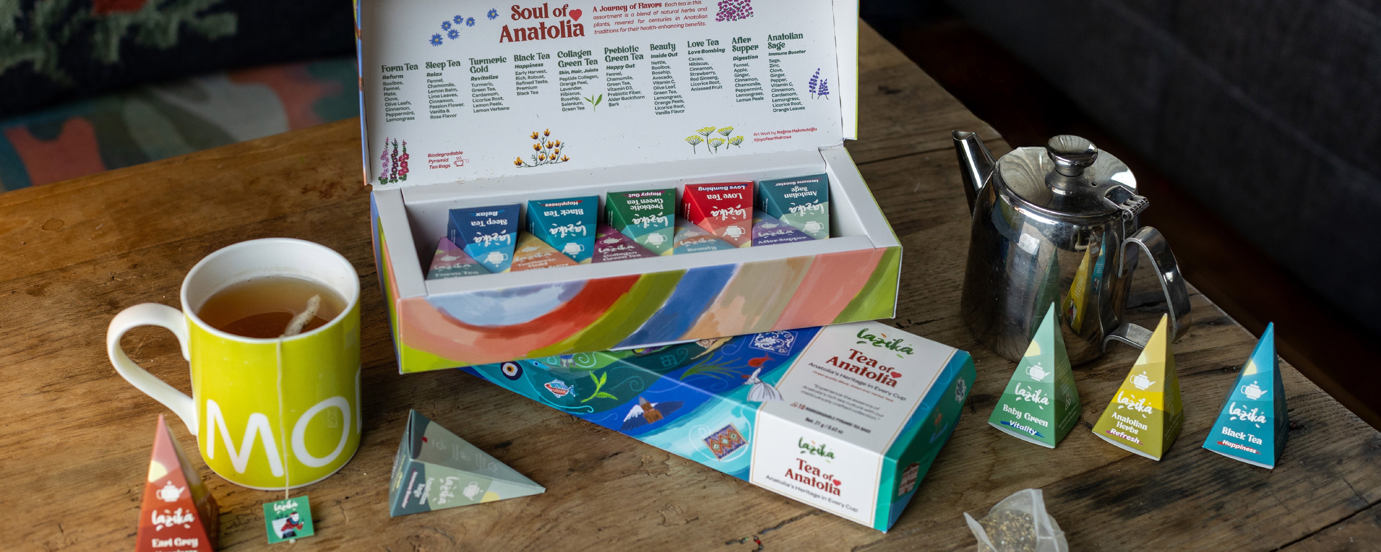 10 Biodegradable Pyramid Tea Bags (Net 21g) Anatolia's Tea/Anatolian Heritage in Every Cup Experience the essence of Anatolia's rich tea culture with Lazika's meticulously crafted collection. Inspired by Anatolia's rich and traditional tea heritage, you must try our tea set. In addition to our Traditional Black, Earl Grey, and Green teas, we want you to experience our healing herbal teas blended with carefully selected herbs. Each pyramid tea bag contains a biodegradable pyramid tea bag. We couldn't think of a more delightful gift. ❤️